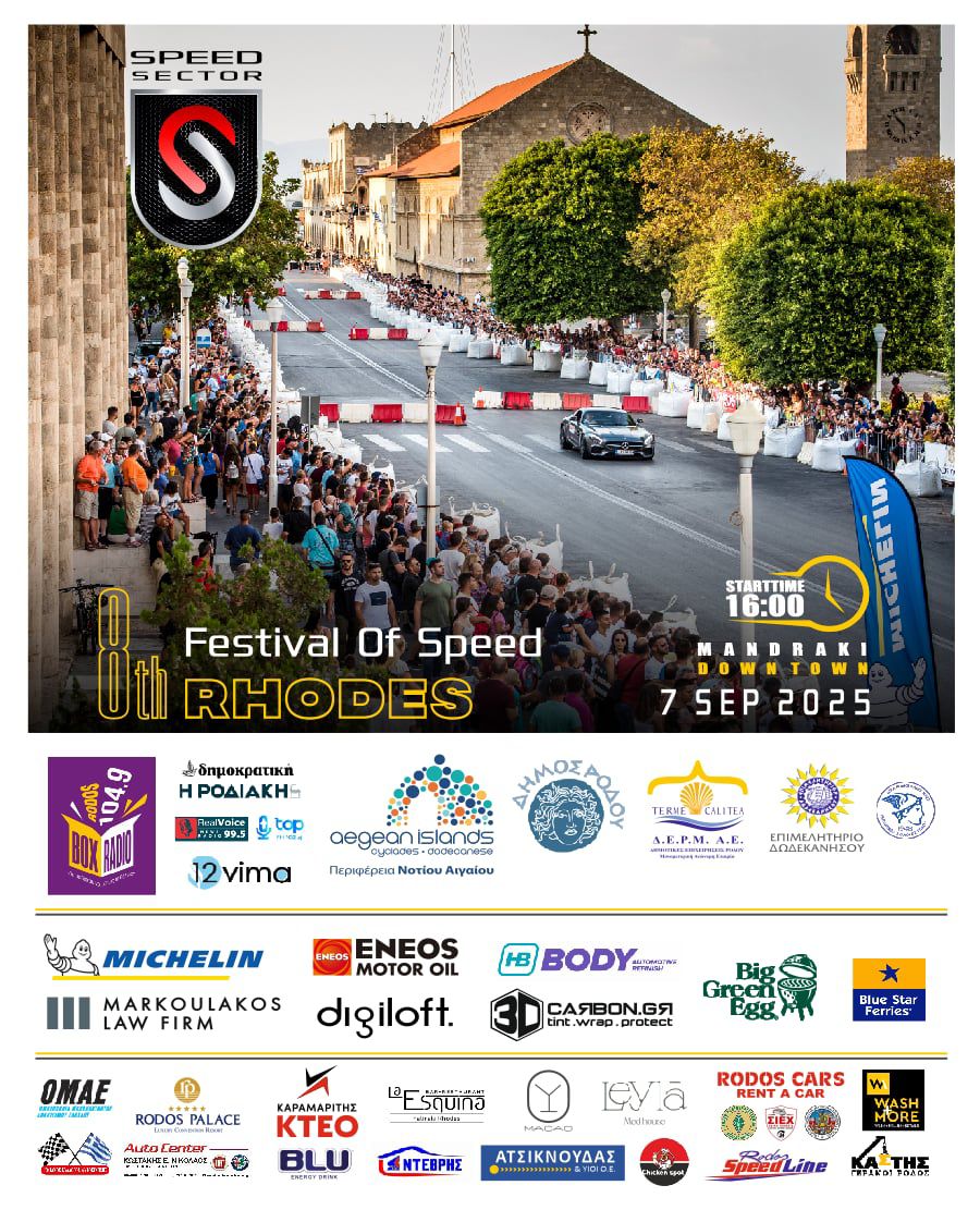 Η Ρόδος για 8η συνεχόμενη χρονιά γκαζώνει με το κορυφαίο διεθνές Festival of Speed να γεμίζει το νησί με λάμψη, ήχο μηχανής και αδρεναλίνη, φέρνοντας supercars που δύσκολα συναντά κανείς ακόμη και στις πιο διάσημες πίστες του κόσμου. Εξήντα οδηγοί, με εμπειρίες από κορυφαίες διαδρομές διεθνώς, δίνουν ραντεβού στη Ρόδο και την Κυριακή 7 Σεπτεμβρίου οι φίλοι της ασφαλούς οδήγησης θα έχουν την ευκαιρία να τα δουν από κοντά και να φωτογραφηθούν δίπλα τους, στη στατική έκθεση που θα στηθεί στην πλατεία Δημαρχείου.