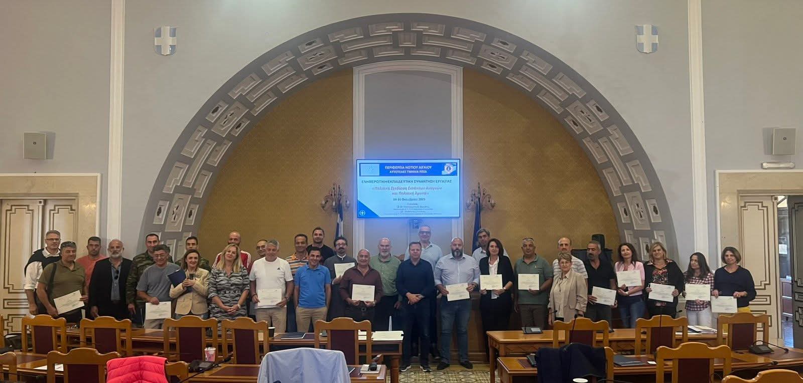 Ενημερωτική Εκπαιδευτική Συνάντηση για την Πολιτική Άμυνα και την Ετοιμότητα της Δωδεκανήσου Ολοκληρώθηκε με επιτυχία η ενημερωτική εκπαιδευτική συνάντηση εργασίας με θέμα «Πολιτική Σχεδίαση Έκτακτων Αναγκών και Πολιτική Άμυνα», που διοργάνωσαν η Περιφέρεια Νοτίου Αιγαίου και το Υπουργείο Εσωτερικών, από τις 14 έως και τις 16 Οκτωβρίου. Η συνάντηση, με αντικείμενο «Εθνικές Διαβαθμισμένες Πληροφορίες και Υλικό (ΕΔΠΥ) – Έννοιες & ...